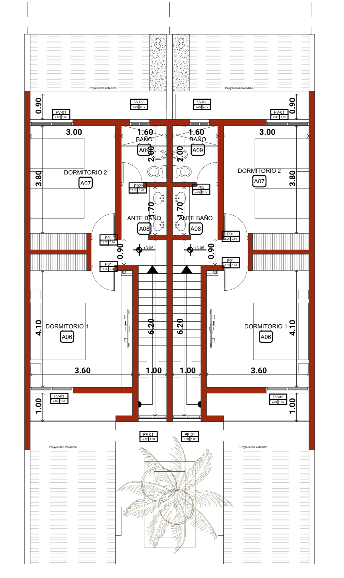 📍 Planta alta: 2 dormitorios con placares y balcones + baño completo